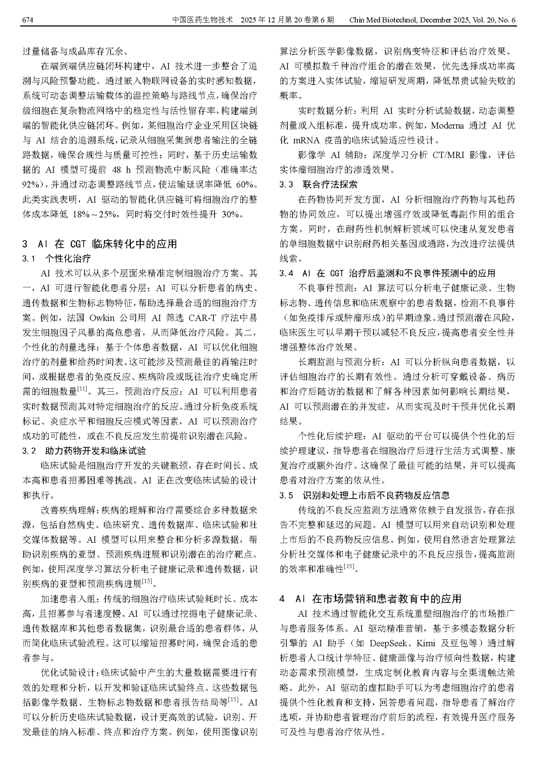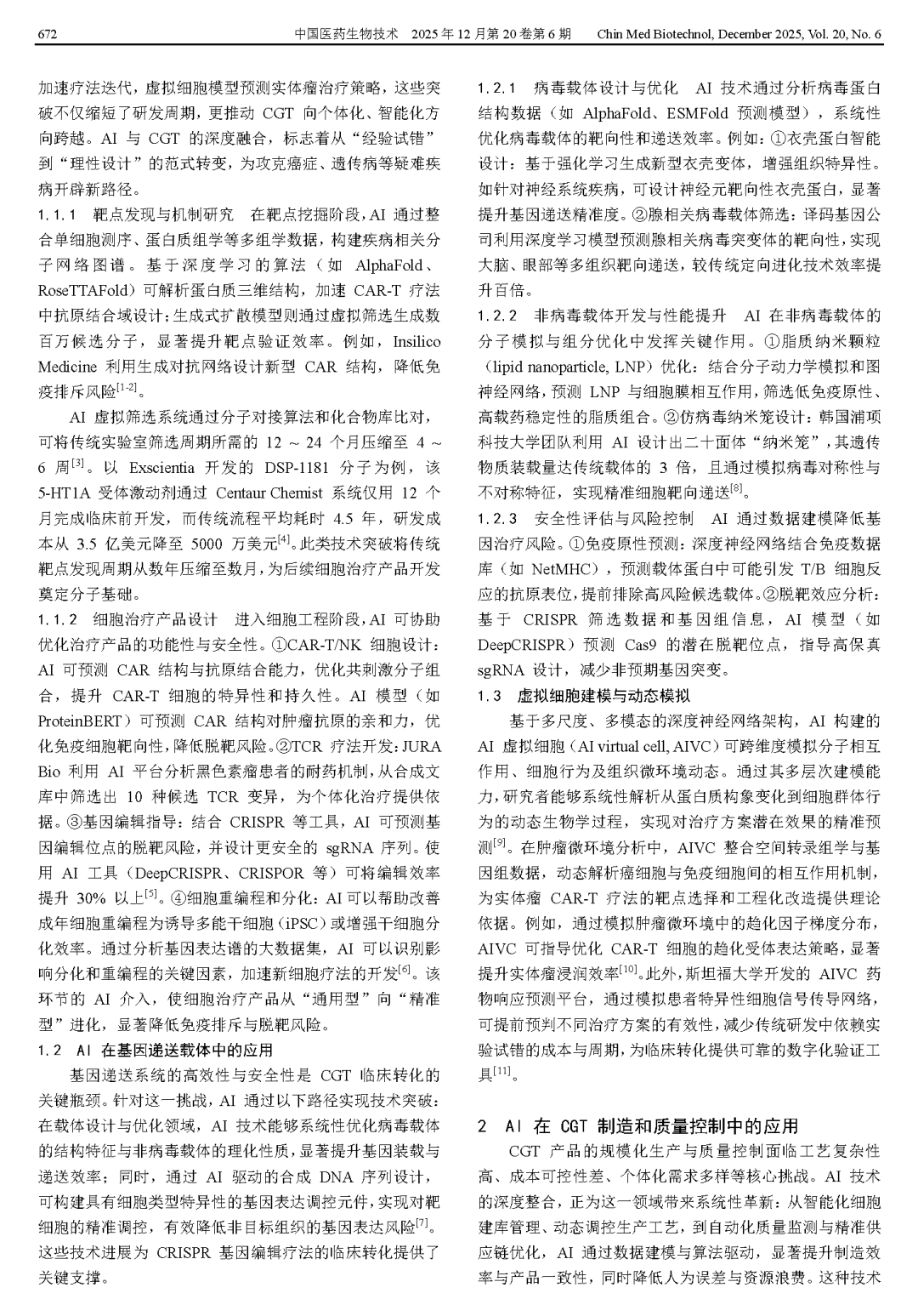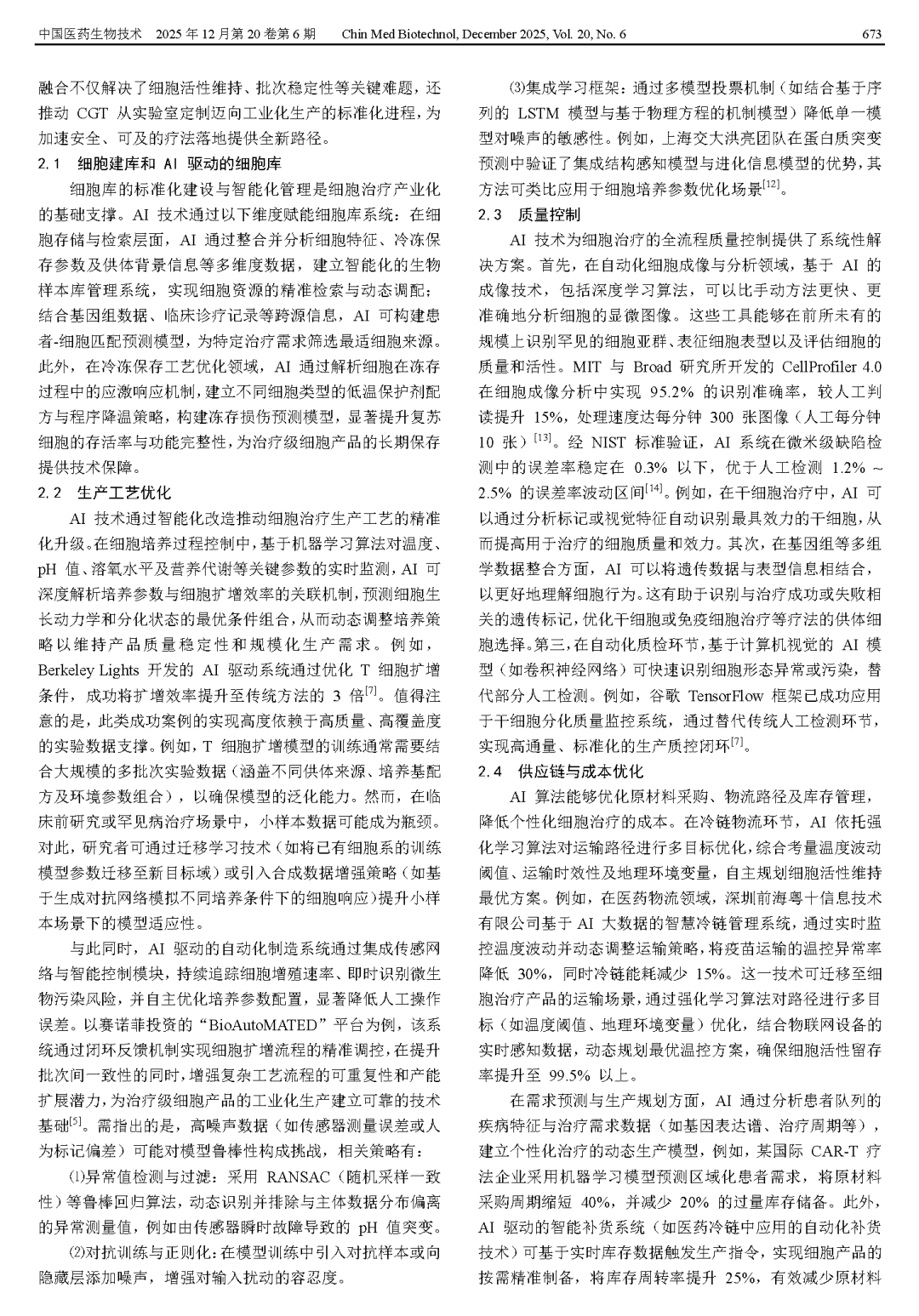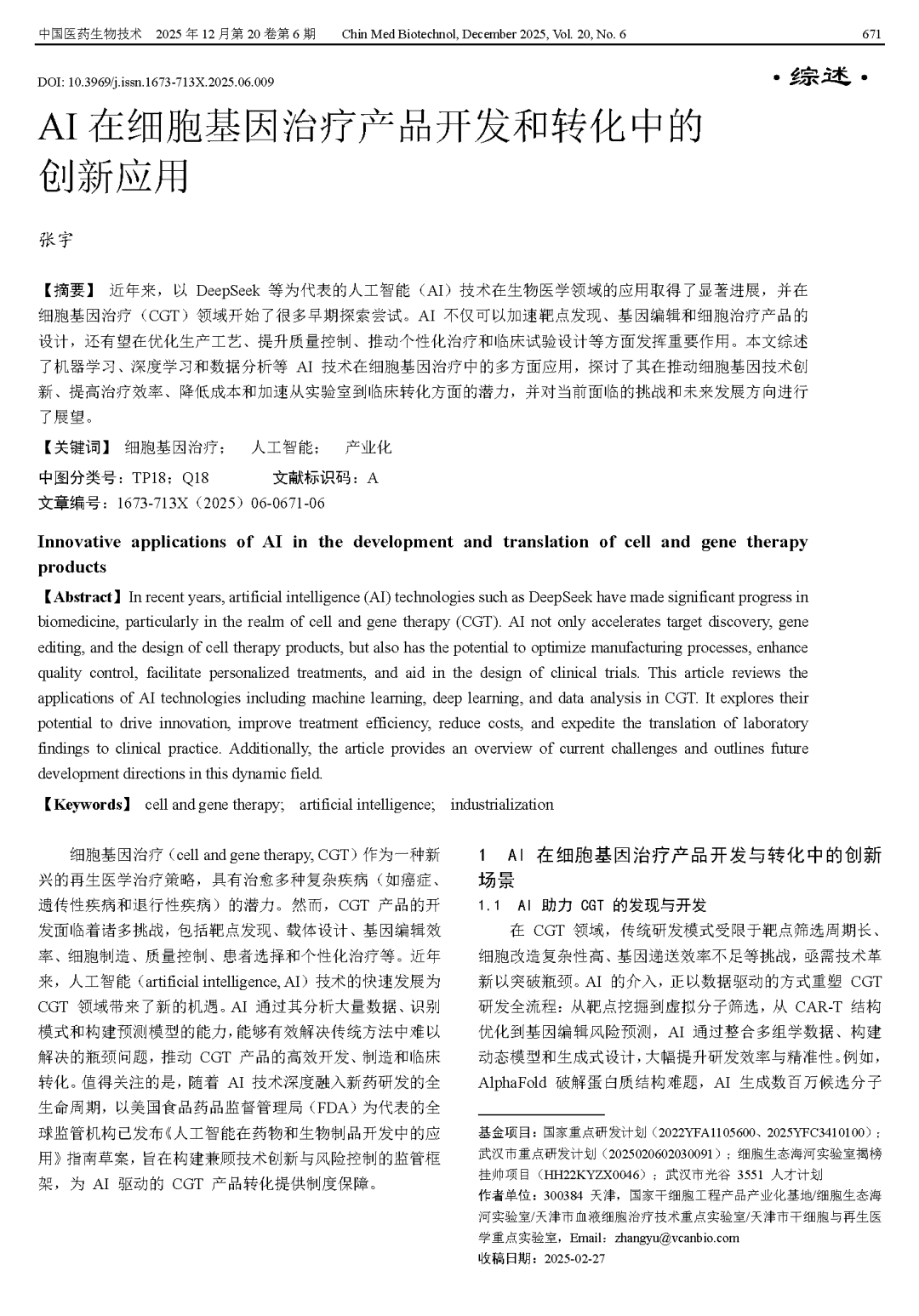 Zhang Y. Innovative applications of AI in the development and translation of cell and gene therapy products[J]. Chin Med Biotechnol, 2025, 20(6):671-676.