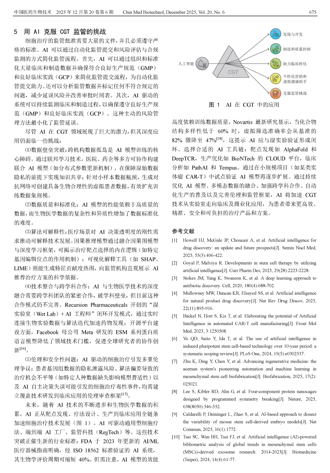 Zhang Y. Innovative applications of AI in the development and translation of cell and gene therapy products[J]. Chin Med Biotechnol, 2025, 20(6):671-676.